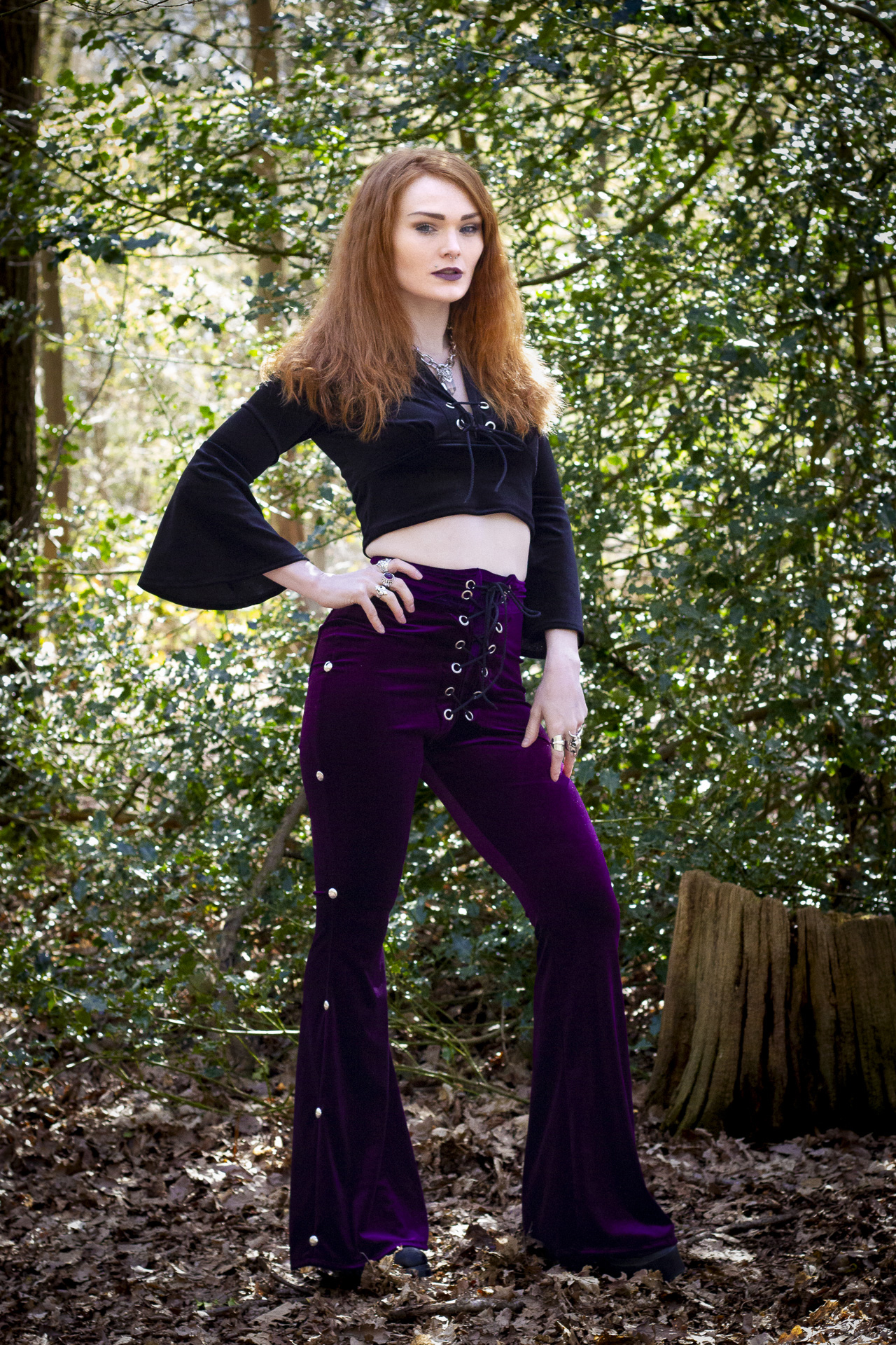 Summon your inner rock priestess in these spellbinding velvet flares, crafted for midnight rituals and dance-floor incantations.