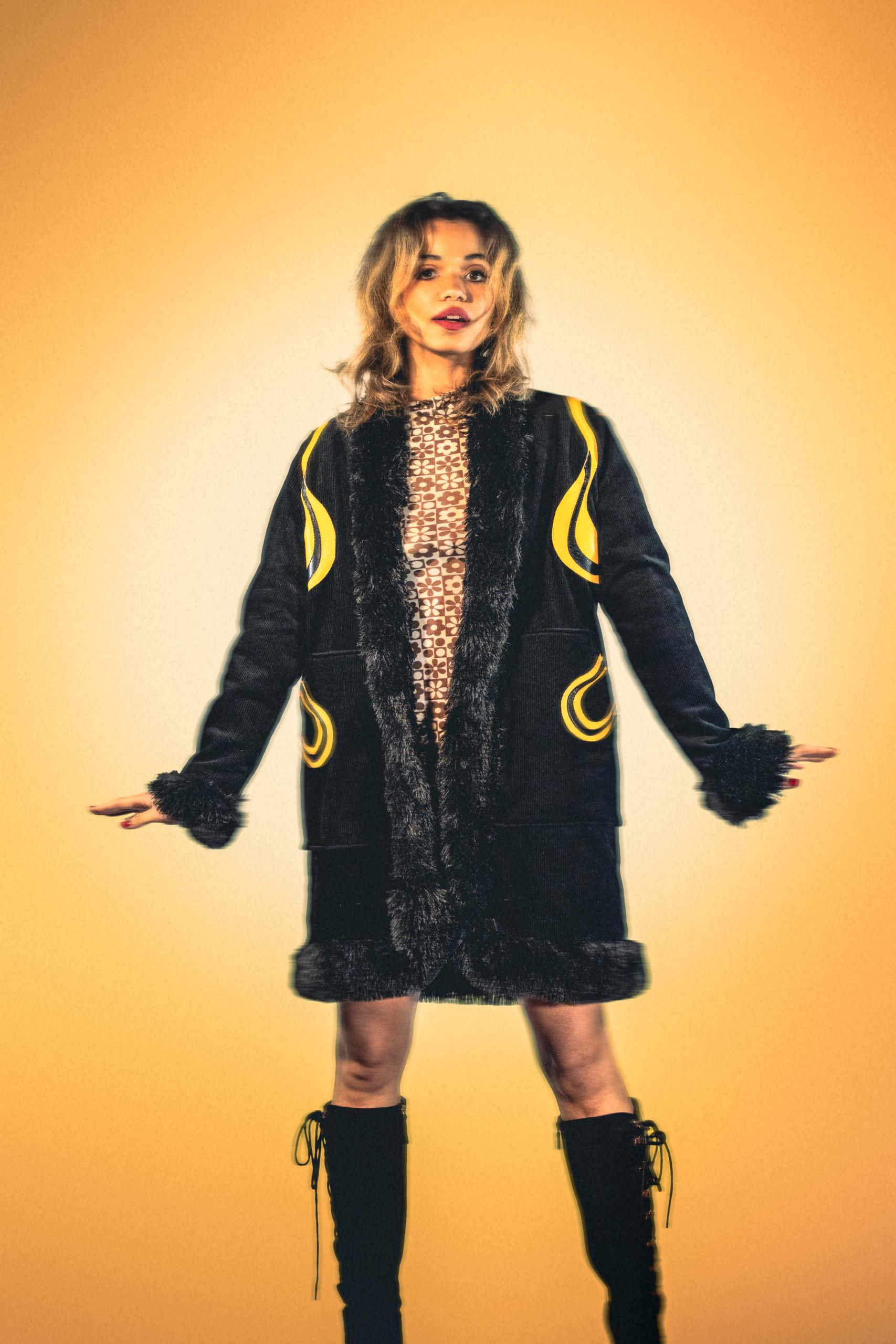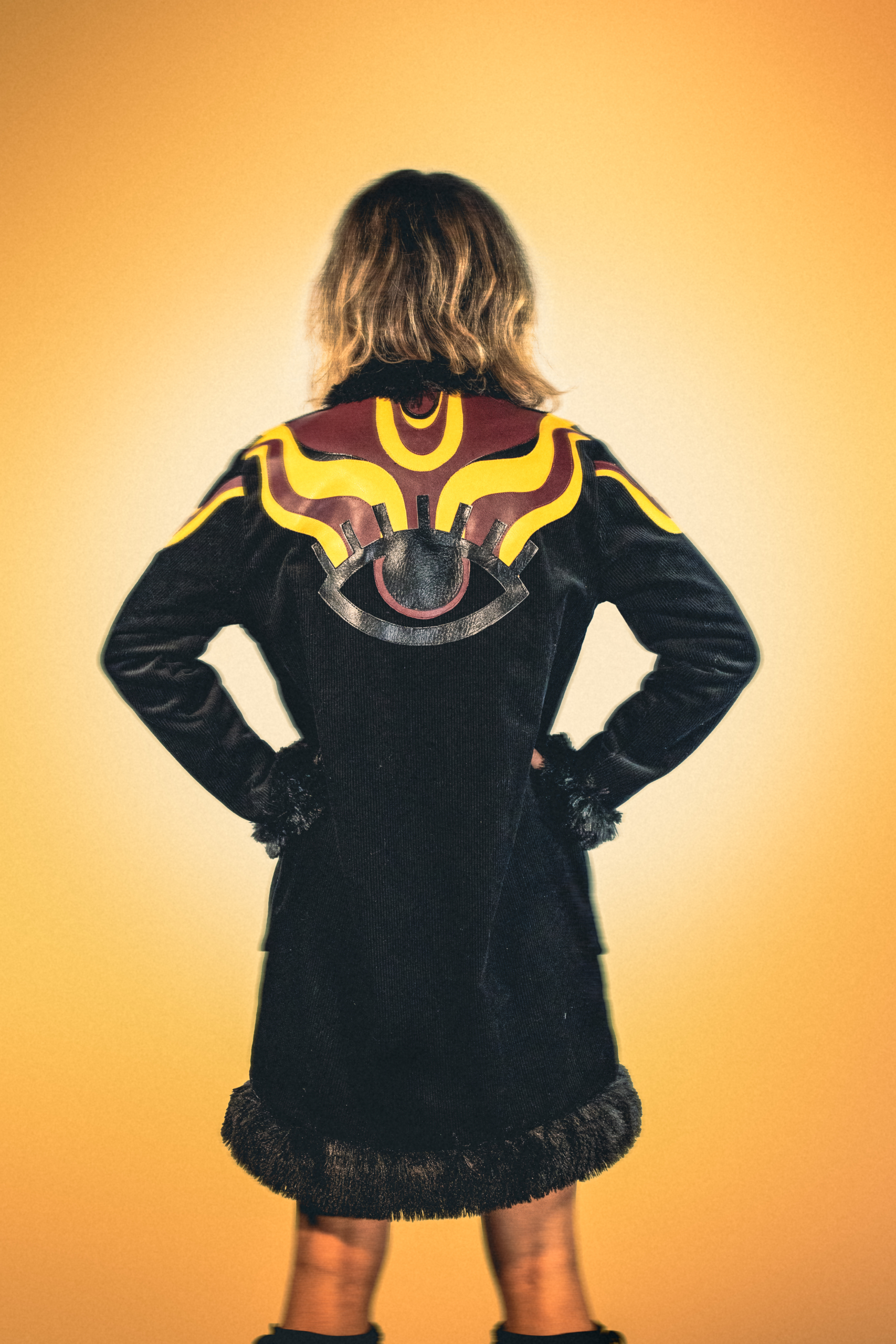 Command the night in this edgy, one of a kind statement coat — a powerful fusion of warmth, rock ‘n’ roll spirit, and conscious luxury.