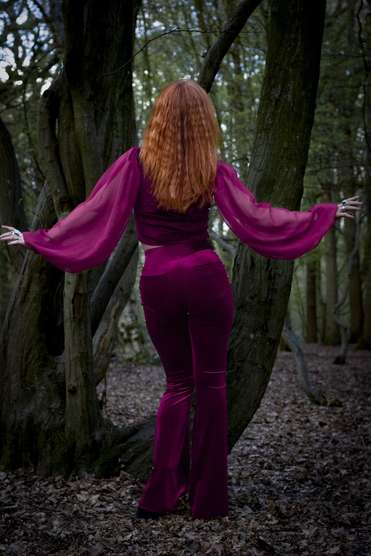 Embrace the enchantment in these deep, wine red velvet flares, where dark romance meets rock ‘n’ roll rebellion.