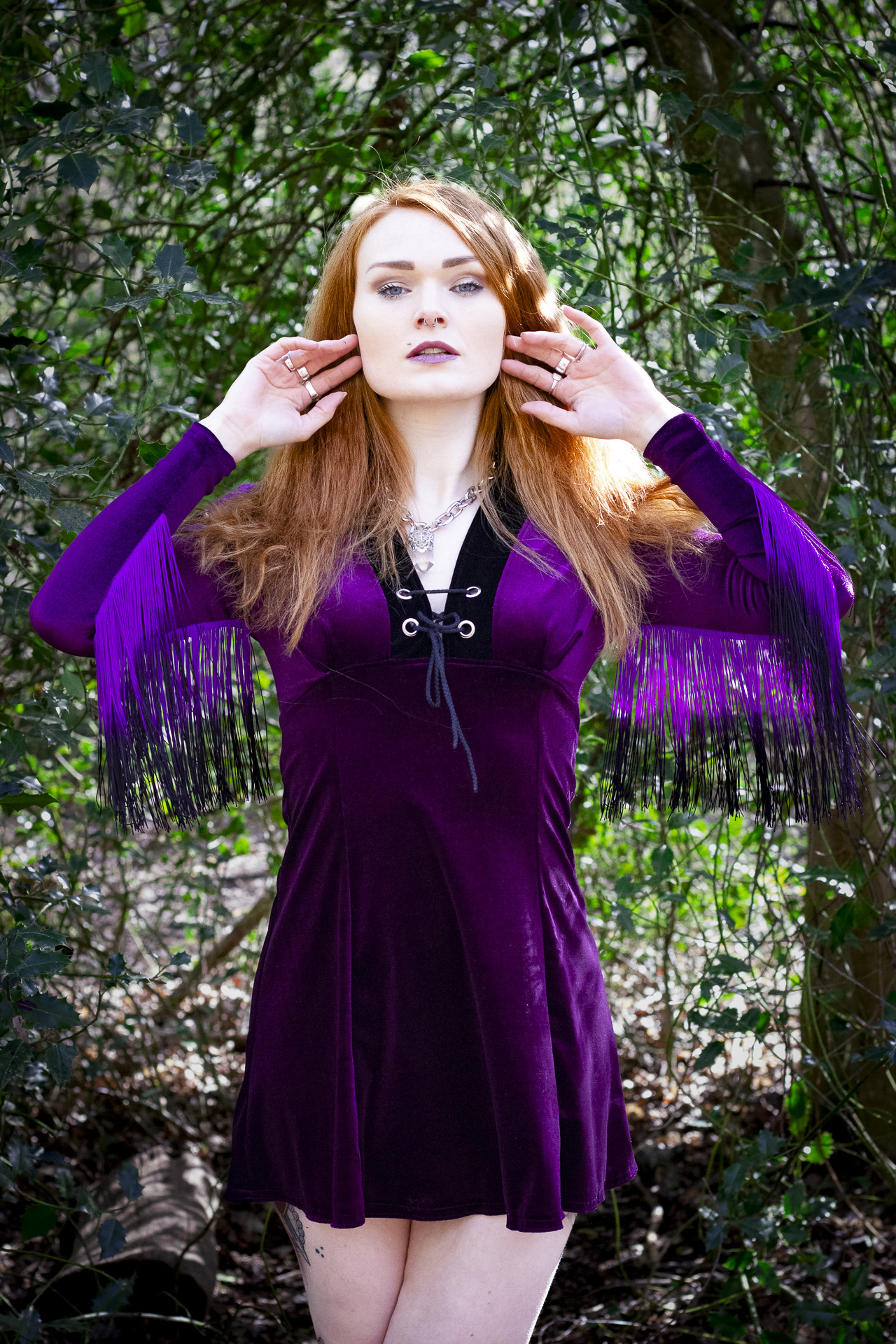 Step into a swirl of late 60’s mystique with this ultra-soft velvet mini dress, where rock ‘n’ roll edge meets witchy elegance.